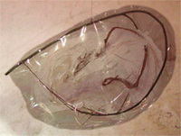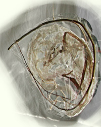 hand made paper, PVC film, willow, flax, pebble dimensions : 25 cm X 30 cm X 105 cm