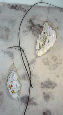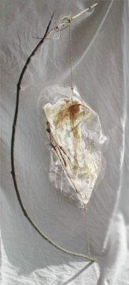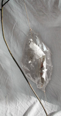 papier fait main, film PVC, saule, lin dimensions : 25 cm X 30 cm X 105 cm